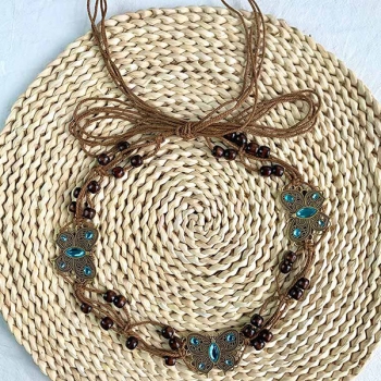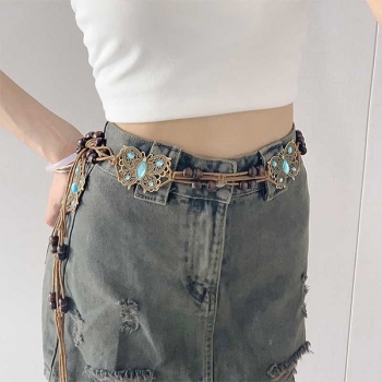 Bohemia Style Rhinestone Bead Butterfly Braid Waist Belt