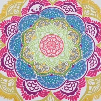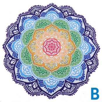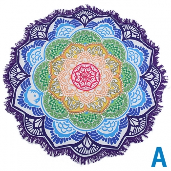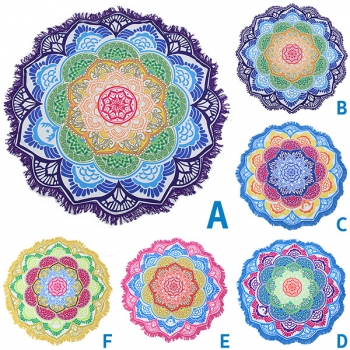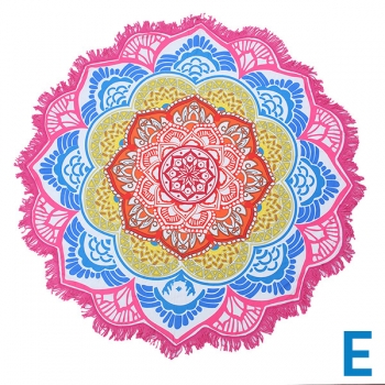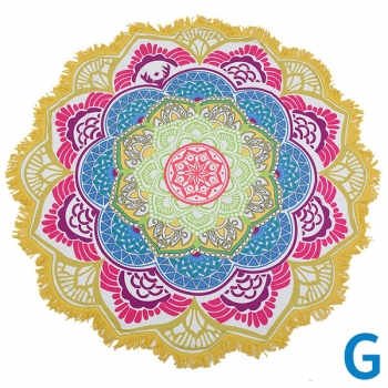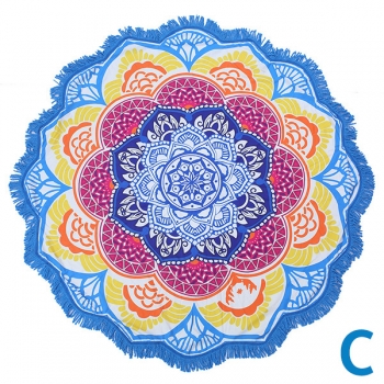 Bohemian Style Floral Printed Round Shape Beach Towel Cushion