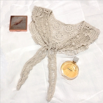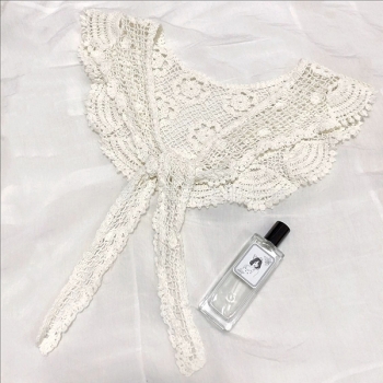 Boho Crochet Floral False Collar-Women's Detachable Lace Capelet - Tie-Front Crochet Shoulder Scarf