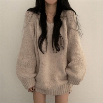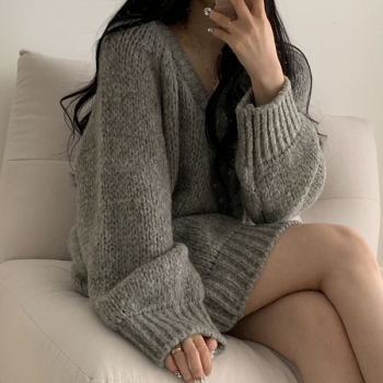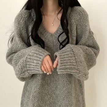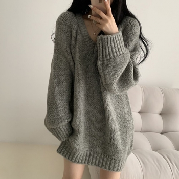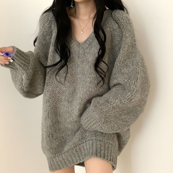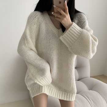 Casual Solid Color V-neck Batwing Long Sleeve Knitted Sweater