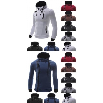 Casual Style Hooded Long Sleeve Oblique Zipper Men's Sweatshirt
