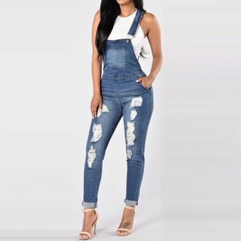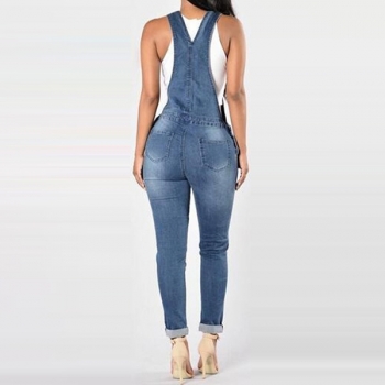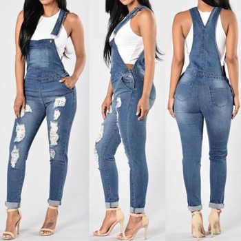 Distressed Style Slim Fit Ripped Denim Dungarees