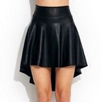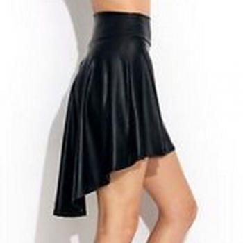 Fashion High Waist Solid Color Irregular Hem PU Leather Skirt