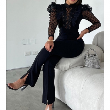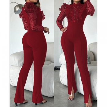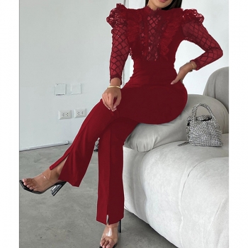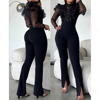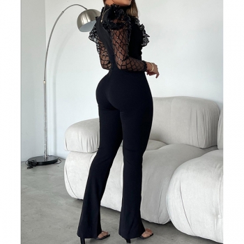 Sexy Solid Color Hotfix Rhinestone Round Neck Long Sleeve Slim-fitting Jumpsuit