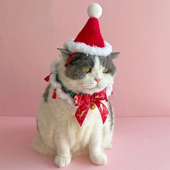 Christmas Pet Costume Set - Plush Santa Hat and Scarf with Bow Tie for Dogs & Cats, Red Holiday Outfit for Small to Medium Pets