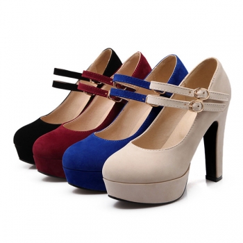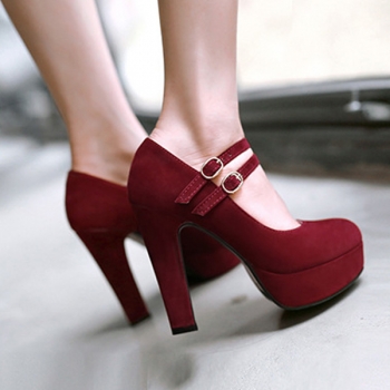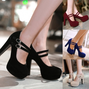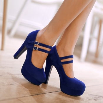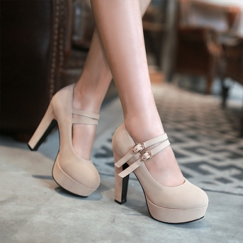 Criss Cross Strap Round Toe Block Heel Platform Pumps