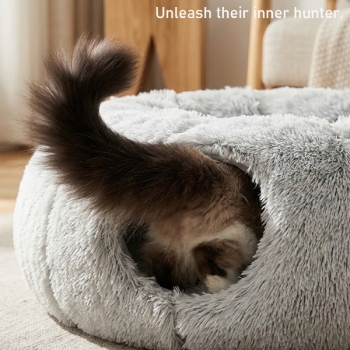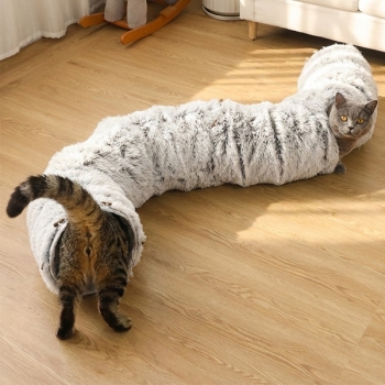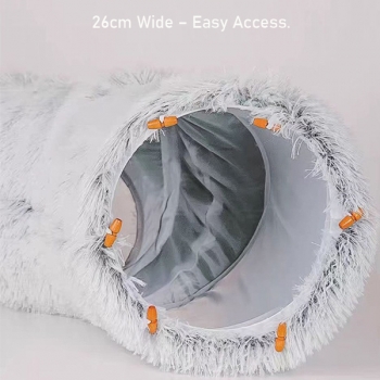 Cute Cozy Hideaway Cat Tunnel: Breathable Long Plush for Play & Sleep