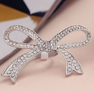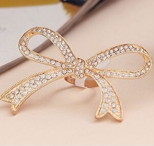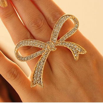 Cute Rhinestone Openwork Bowknot Shape Ring For Women