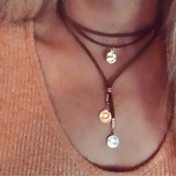 Edgy Boho Wrap Necklace -Black/Brown Faux Suede Layered Choker with Hammered Silver Coins