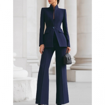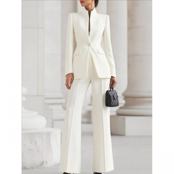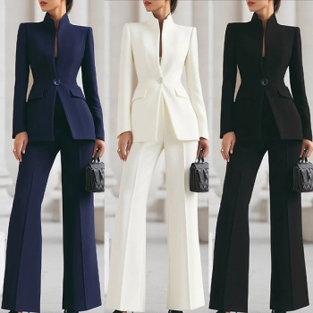 Elegant Solid Color Two-piece Suit Set Consist of Blazer and Suit pants
