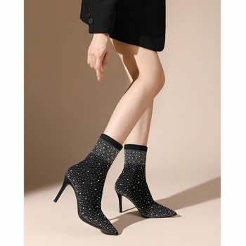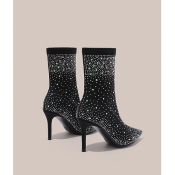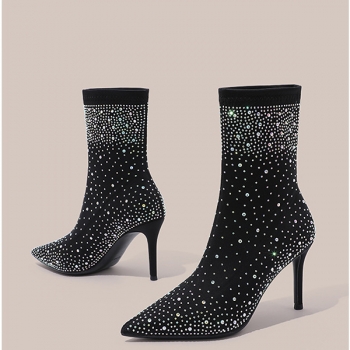 Fashion Bling-bling Rhinestone Pointed-toe High-heeled Ankle Boots