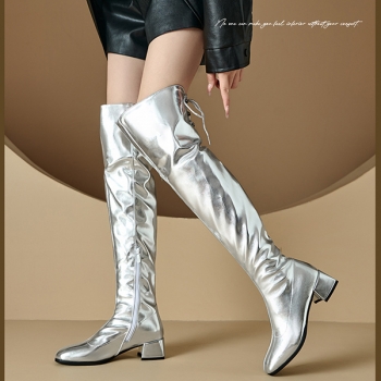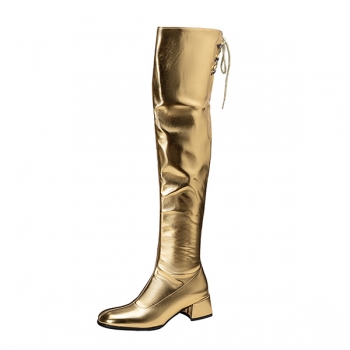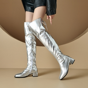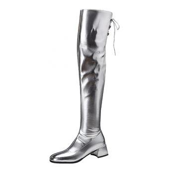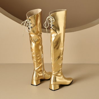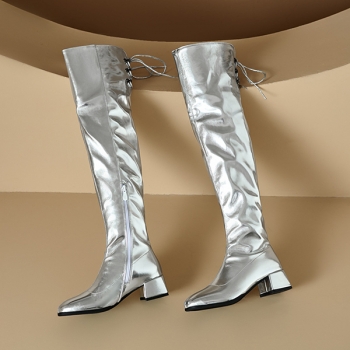 Fashion Bright Color Block Heeled Side Zipper Back Lace-up Boots