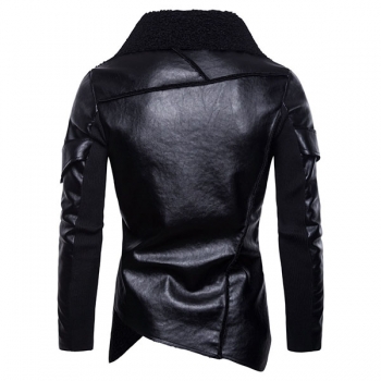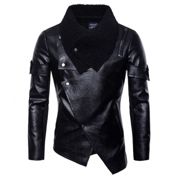 Fashion Buckle Irregular Artificial Leather PU Jacket for Men