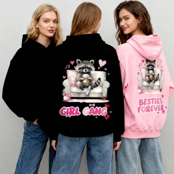 Fashion Cartoon Printed Girl Gang Hooded Sweatshirt for Best Friends