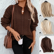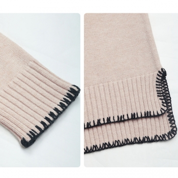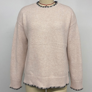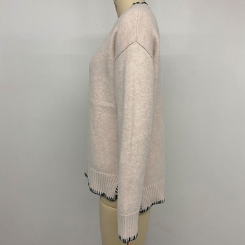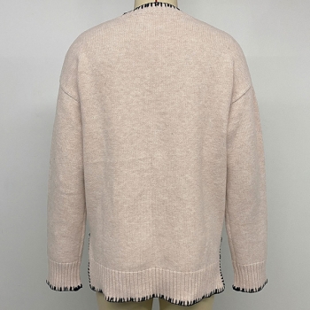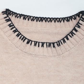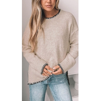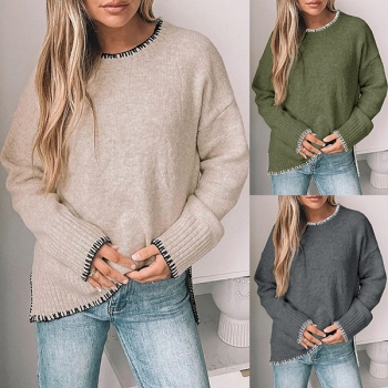 Fashion Contrast Color Crew Neck Side Slit High-low Hemline Sweater