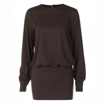 Fashion Crew Neck Long Sleeve Backless Bodycon Dress