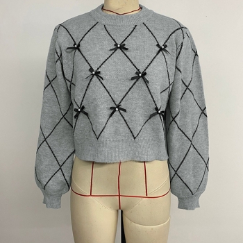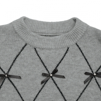 Fashion Crew Neck Long Sleeve Bowknot Sweater