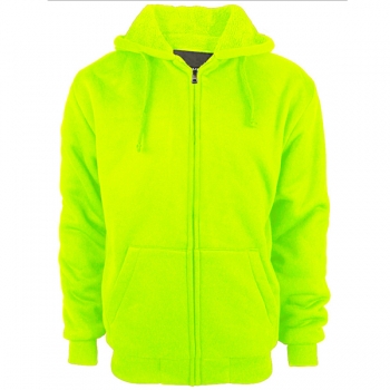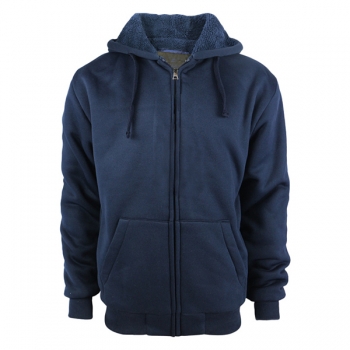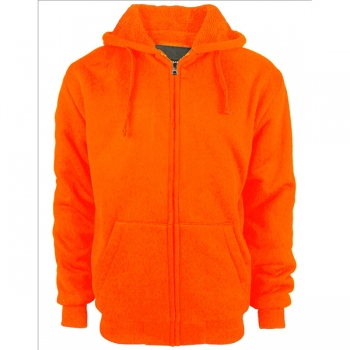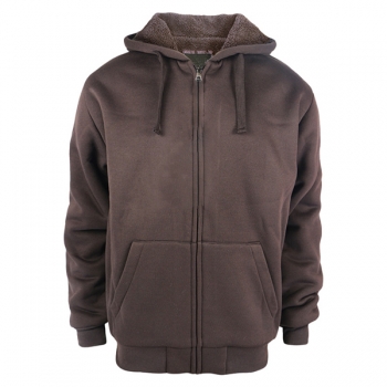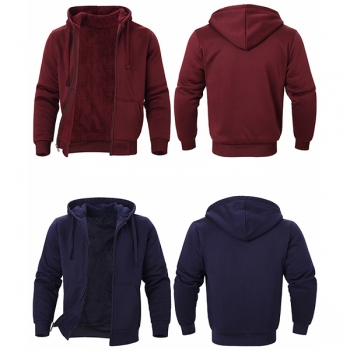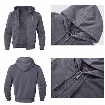 Fashion Front Zipper Drawstring Hooded Warm Plush Lined Sweatshirt Jacket for Men