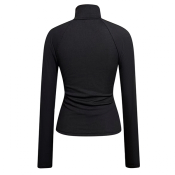 Fashion Half-zipper Mock Neck Long Sleeve Ribbed Shirt