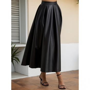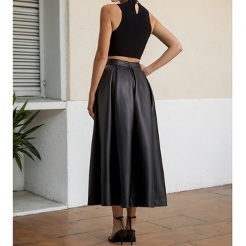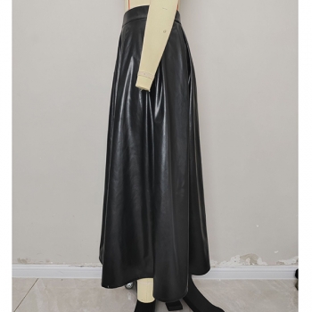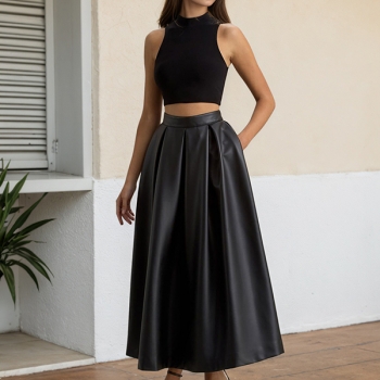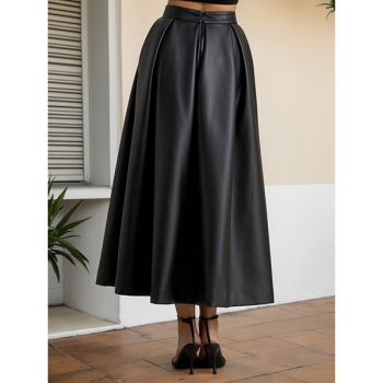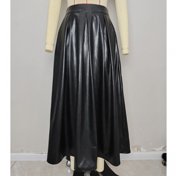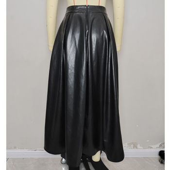 Fashion High-rise Artificial Leather PU A-line Skirt