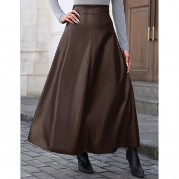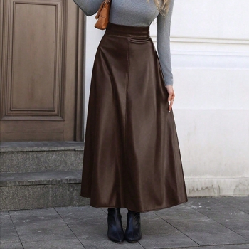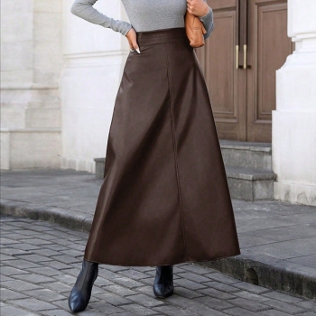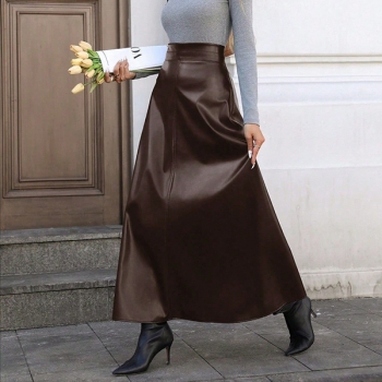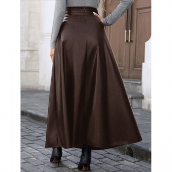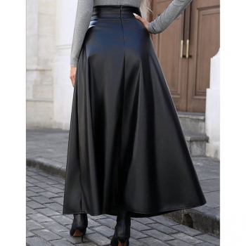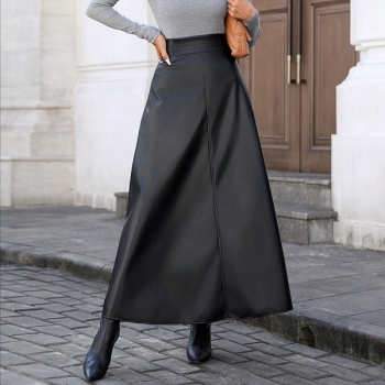Fashion High-rise Artificial Leather PU Maxi Skirt
