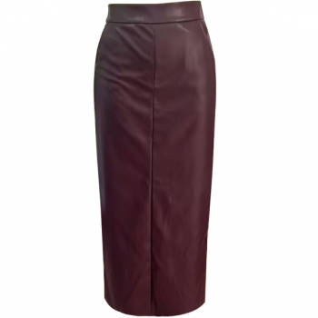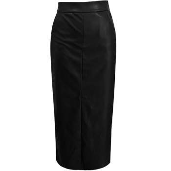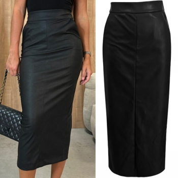 Fashion High-rise Back Slit Artificial Leather PU Slim-fit Skirt