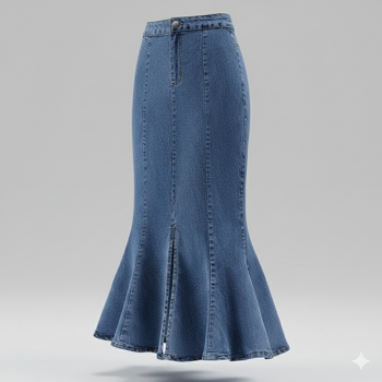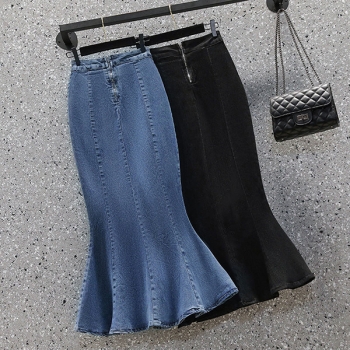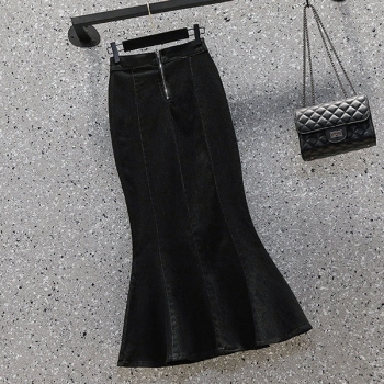 Fashion High-rise Fishtail Old-washed Denim Skirt