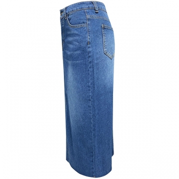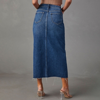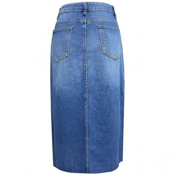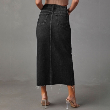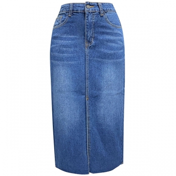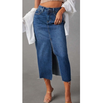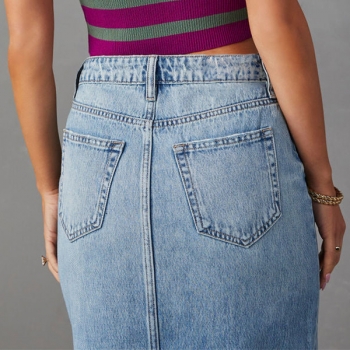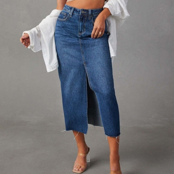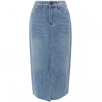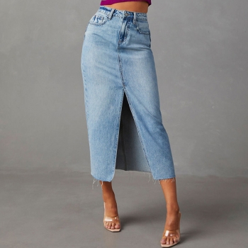 Fashion High-rise Front Slit Old-washed Denim Skirt