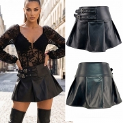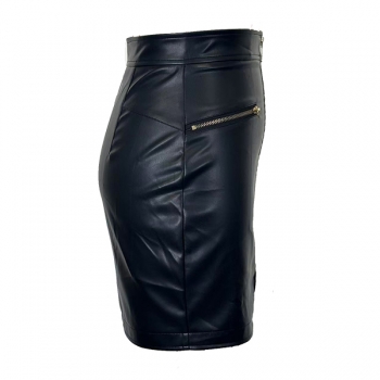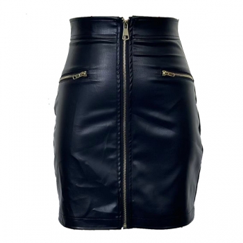 Fashion High-rise Front Zipper Artificial Leather PU Slim-fit Skirt