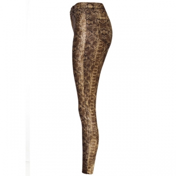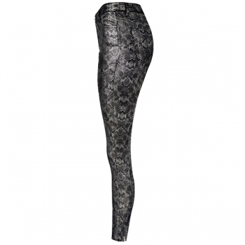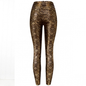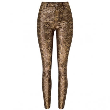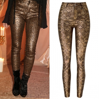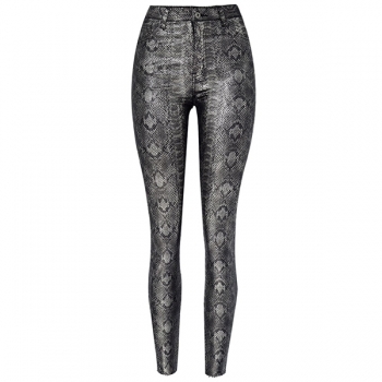 Fashion High Waist Serpentine Printed Artificial Leather PU Skinny Pants
