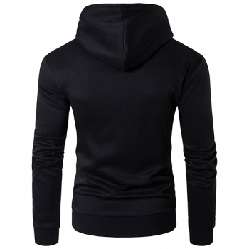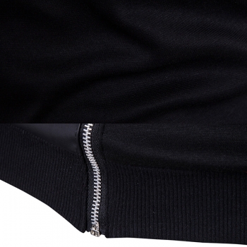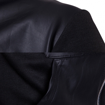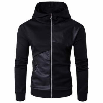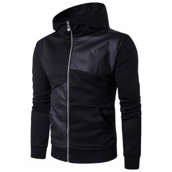 Fashion Hooded Long Sleeve Front Zipper Artificial Leather PU Spliced Sweatshirt for Men