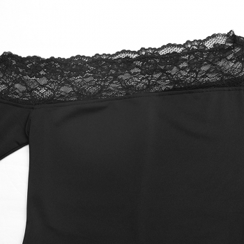 Fashion Lace Spliced Slant Shoulder Long Sleeve Bodysuit