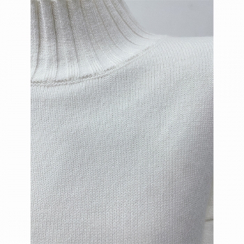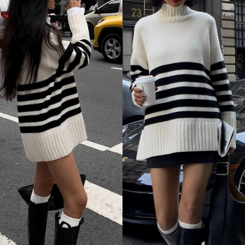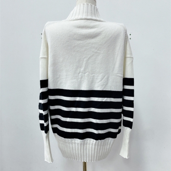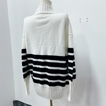 Fashion Mock Neck Long Sleeve Black and White Stripe Knitted Sweater