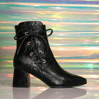 Fashion Pointed-toe Side Lace-up Block Heeled Ankle Boots