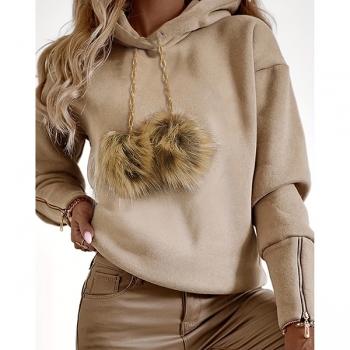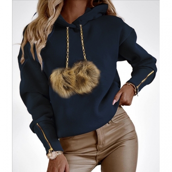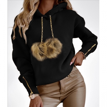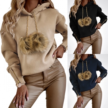Fashion Pom-pom Chain Hooded Long Sleeve Zipper Sweatshirt