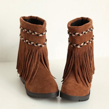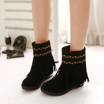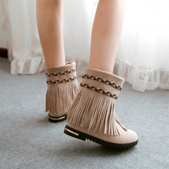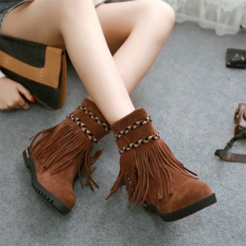 Fashion Round Toe Flat Heel Tassels Boots Booties