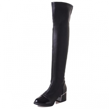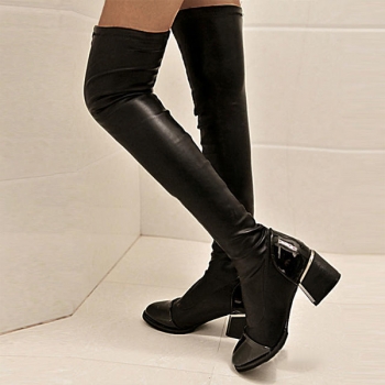 Fashion Solid Color Artificial Leather PU Block Heeled Over-the-knee Boots