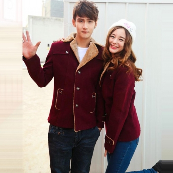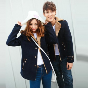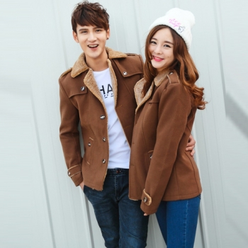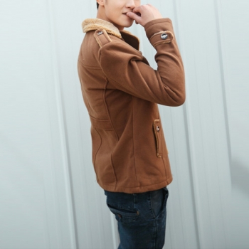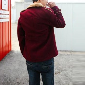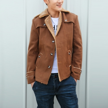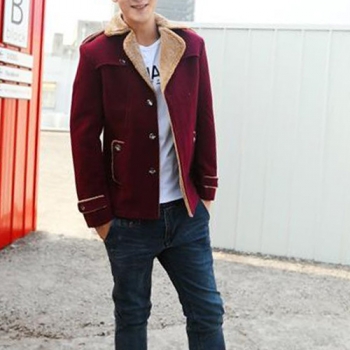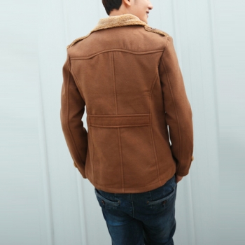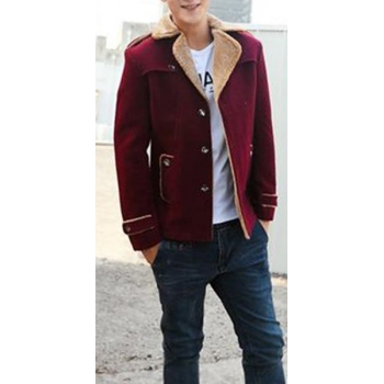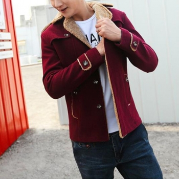 Fashion Solid Color Long Sleeve Lapel Faux Cashmere Men's Coat