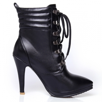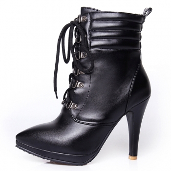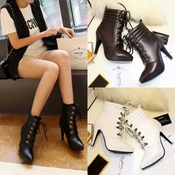 Fashion Soloid Color Pointed Toe High-heeled Lace-up Matin Boots