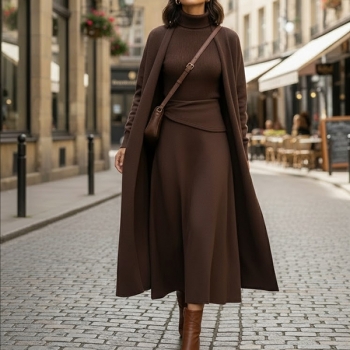 Fashion Three-piece Consist of Mock Neck Sleeveless Shirt, Midi Skirt and Cardigan