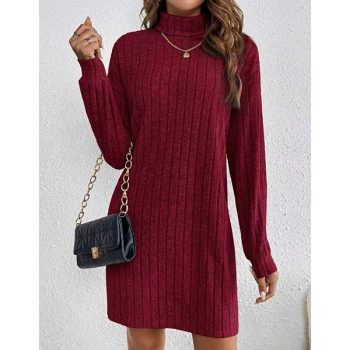 Fashion Turtleneck Long Sleeve Cable Knitted Sweater Dress