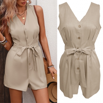 Fashion V-neck Sleeveless Self-tie Romper