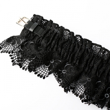 Gothic Boho Black Lace Corset Belt - Ruffled Peplum Waist Cinch