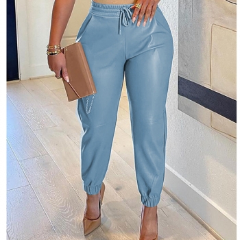 Hip-hop Style Solid Color Elastic Waist PU Leather Pants