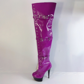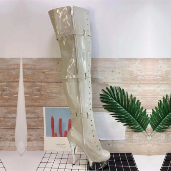 Over-The-Knee Leather Combat Boots with Buckle Detail