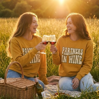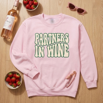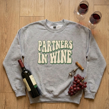 Partners in Wine Sweatshirt for Women - Retro Wavy Text Crewneck Pullover - Funny Best Friend Matching Shirts - Sisters BFF Gifts for Winery Trips