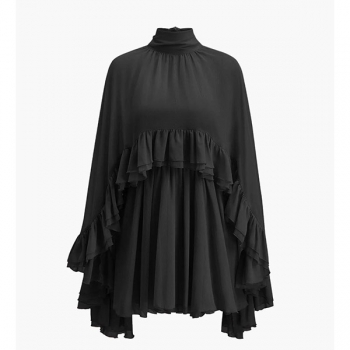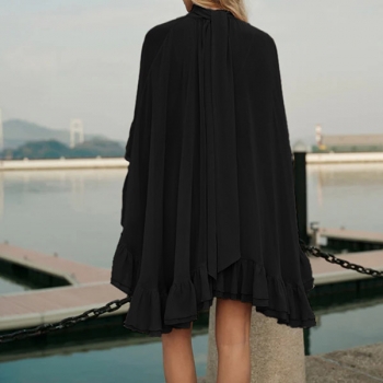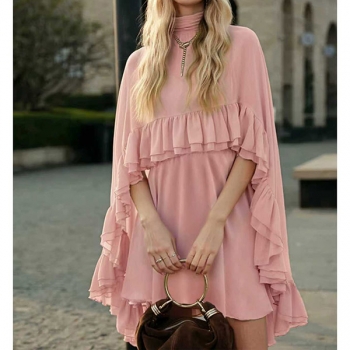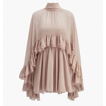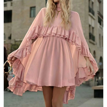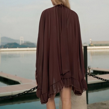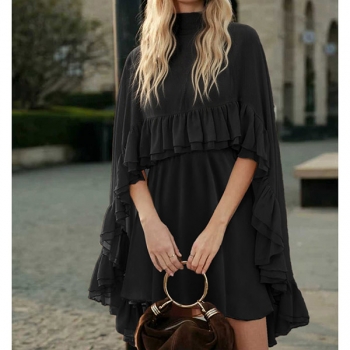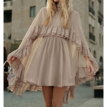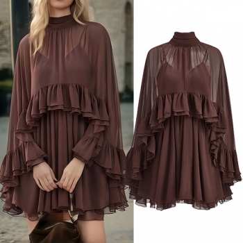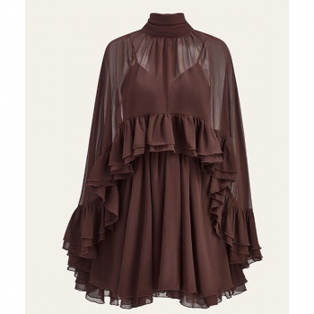 Semi-Sheer Chiffon Ruffle Dress With Outer Cape