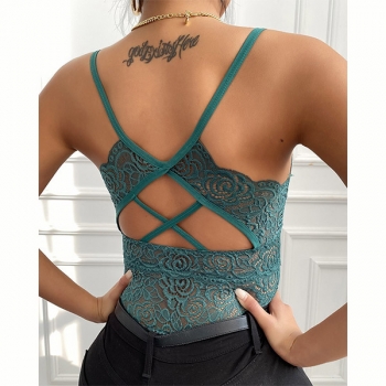 Sexy Backless V-neck Solid Color Hollow Out Lace Sling Underwear Bra