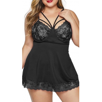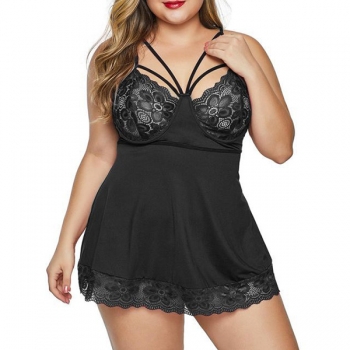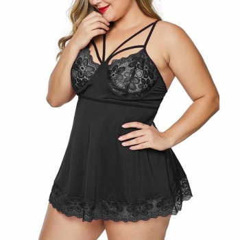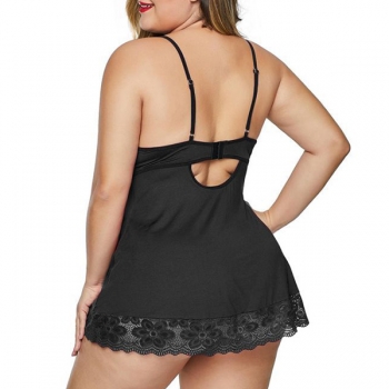 Sexy Lace Spliced Cutout Plus-size Nightwear Dress