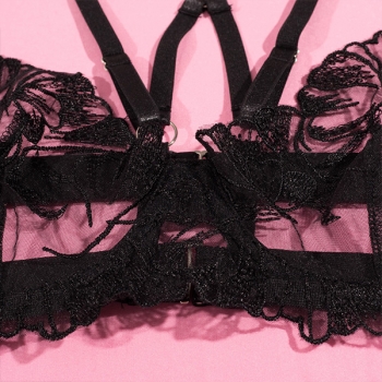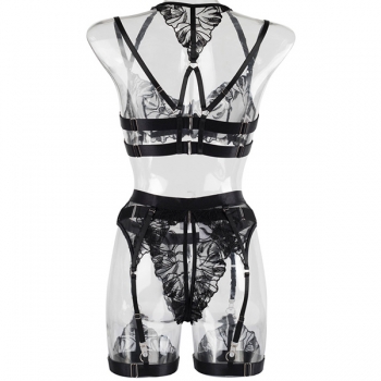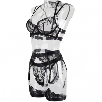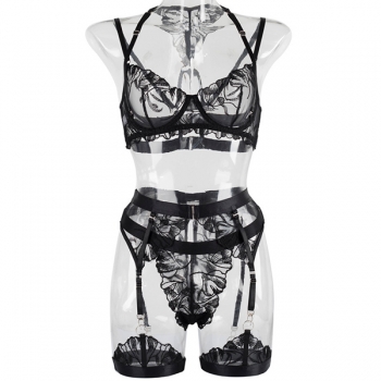 Sexy Semi-through Jacquard Lace Four-piece Lingerie Set